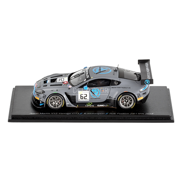 The 1:43 Diecast Modelcar of the Aston Martin Vantage #62 which had Polo Position of the 24H Spa 2018.