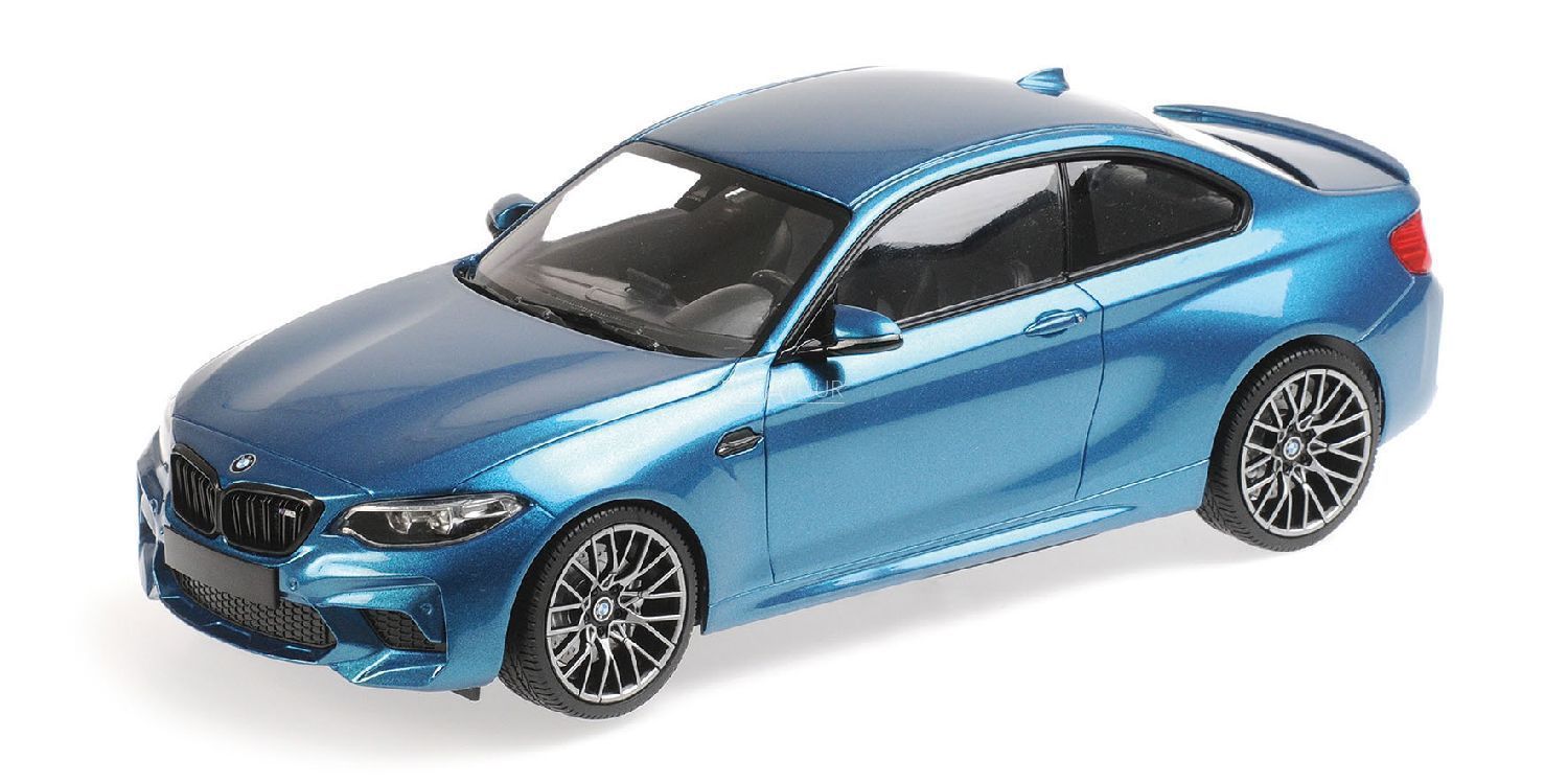 The 1:18 Diecast modelcar of the BMW M2 Competition of 2019 in Blue Metallic.
