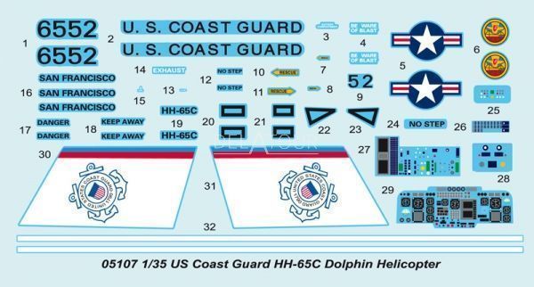 The 1:35 Model Kit of the US Coast Guard HH-65C Dolphin Helicopter.