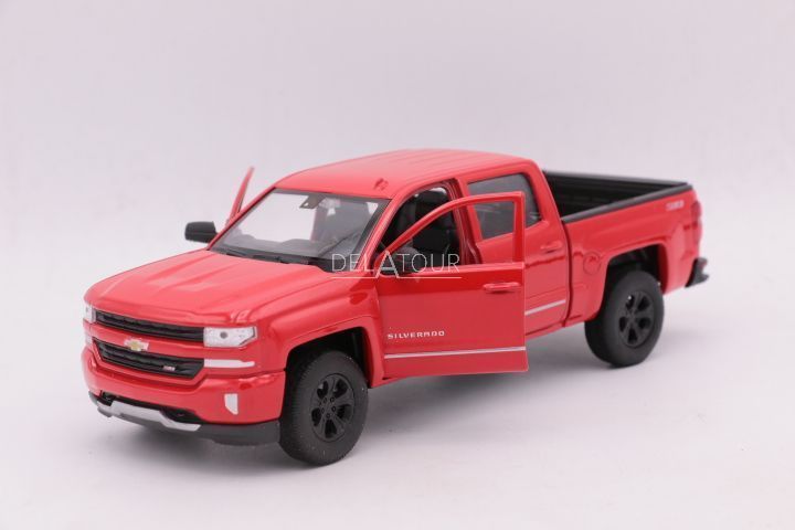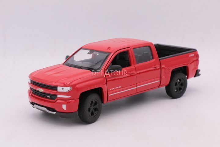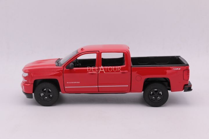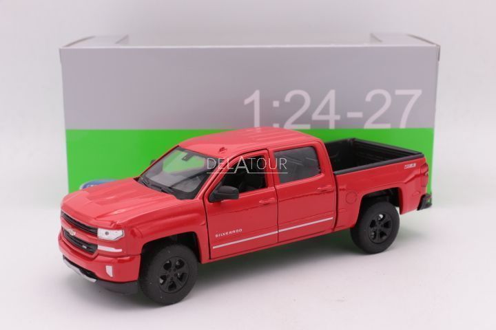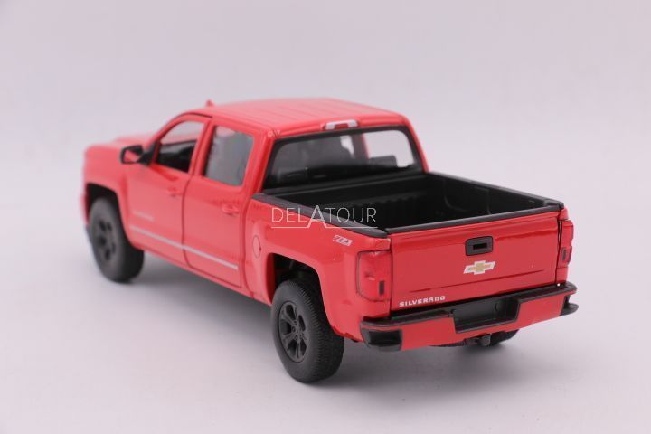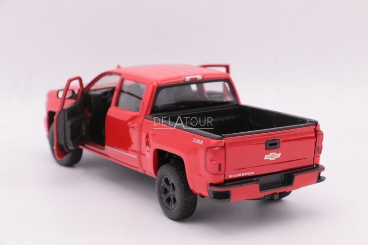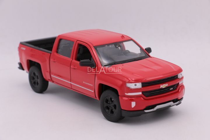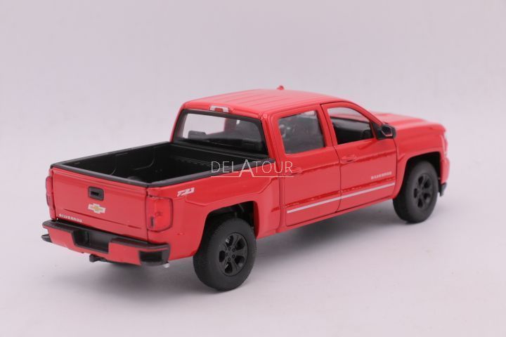 The 1:24 Diecast Modelcar of the Chevrolet Silverado of 2017 in Red.