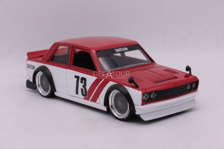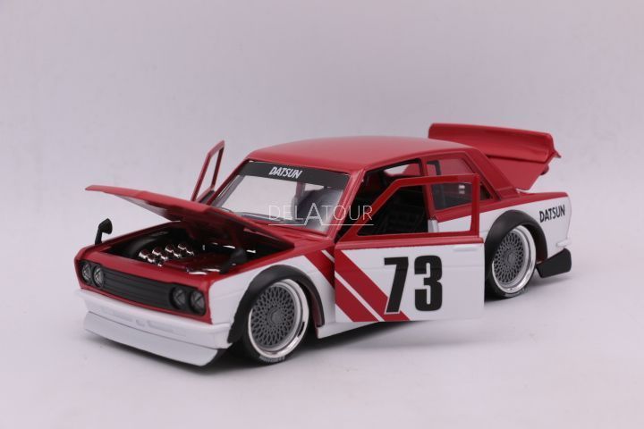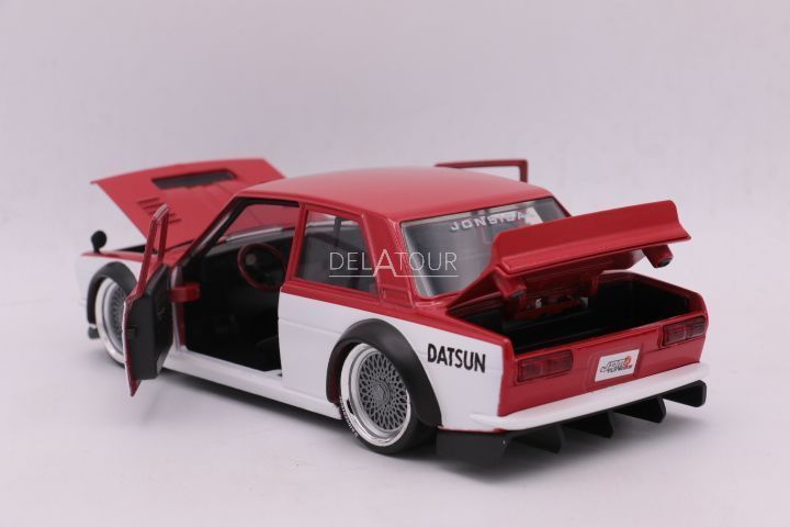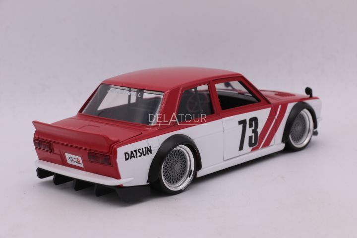 The 1:24 Diecast Modelcar of the Datsun 510-Widebody of 1973 in Red/White.