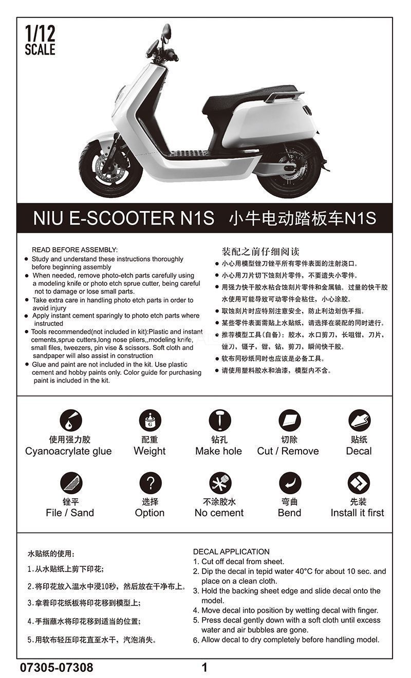 The 1:12 Model Kit of the E-Scooter NIU N1S.