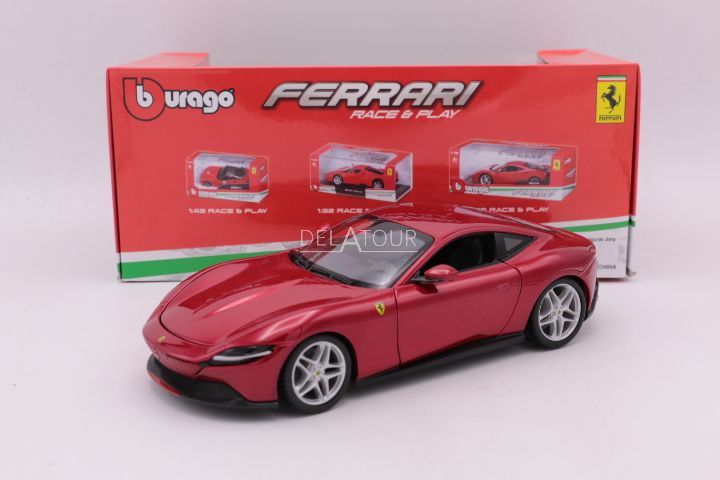 The 1:24 Diecast modelcar of the Ferrari Roma in Red. The manufacturer of the scalemodel is Burago.