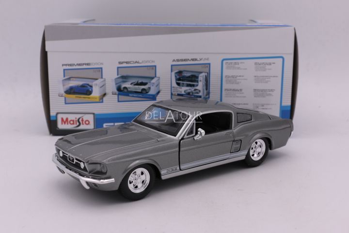 The 1:24 Diecast modelcar of the Ford Mustang GT of 1967 in Light Grey.