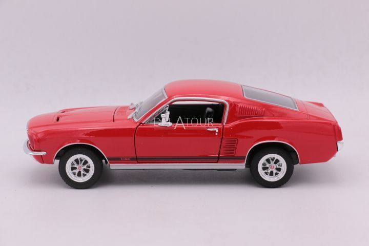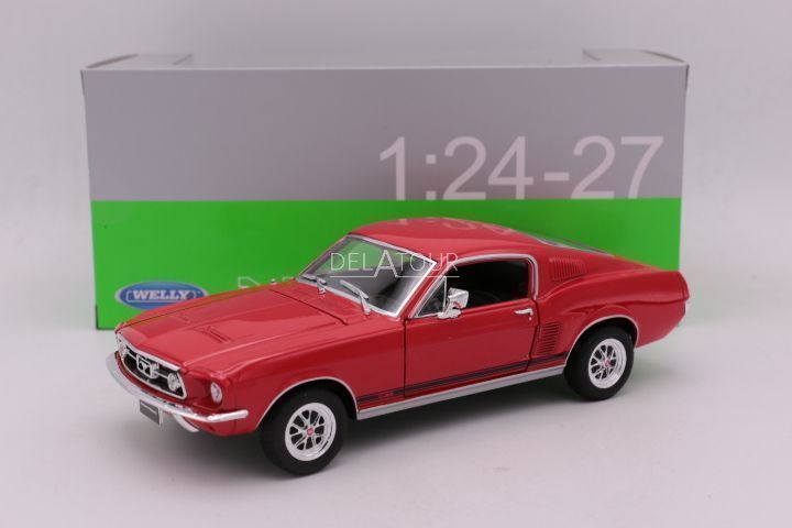 The 1:24 Diecast modelcar of the Ford Mustang GT of 1967 in Red.