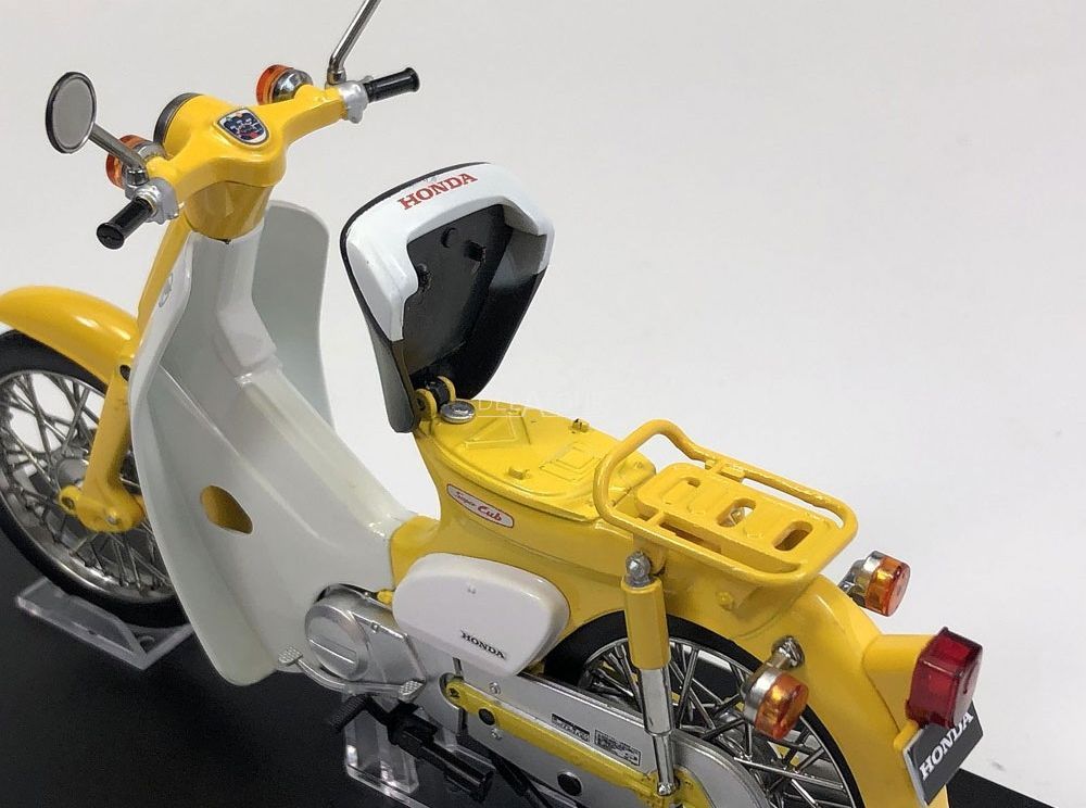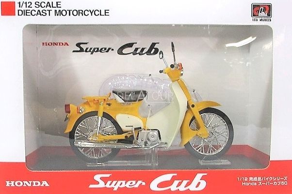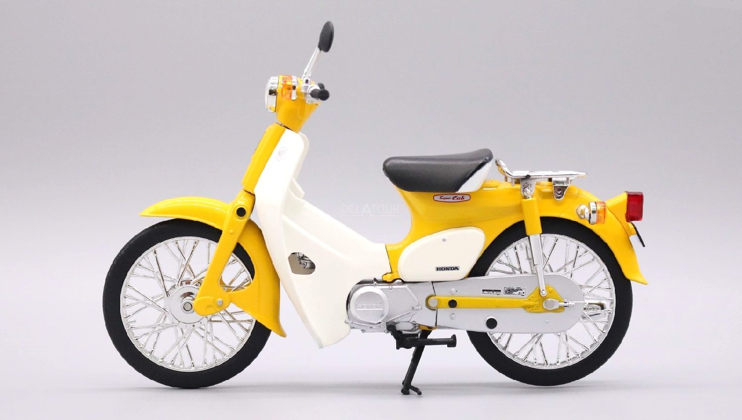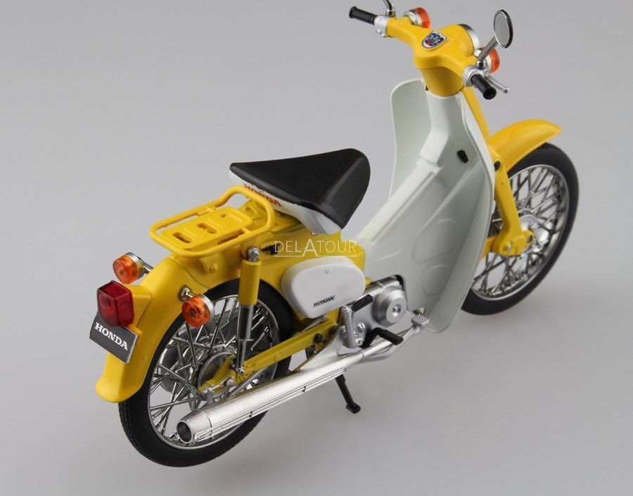 The 1:12 Diecast modelcar of the Honda Super Cub Motorcycle in Yellow.