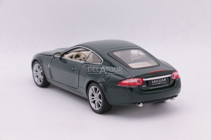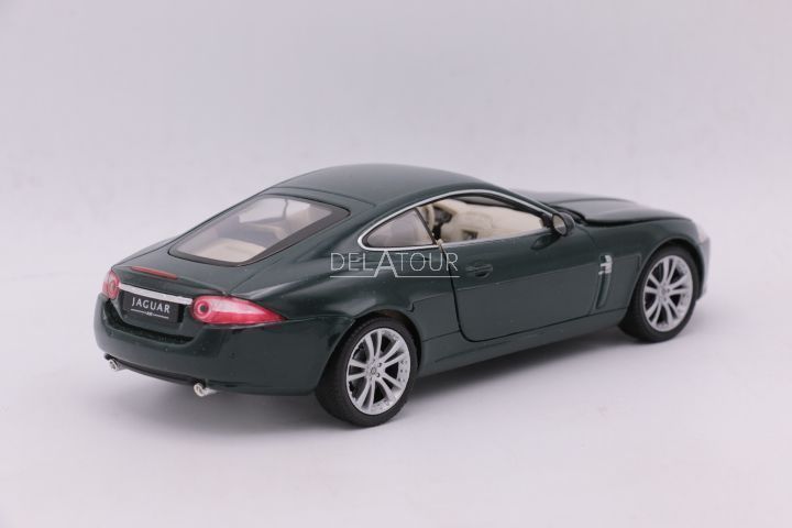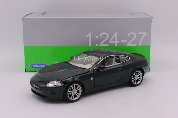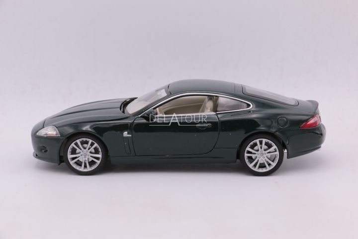 The 1:24 Diecast modelcar of the Jaguar XK Coupe of 2006 in Dark Green.