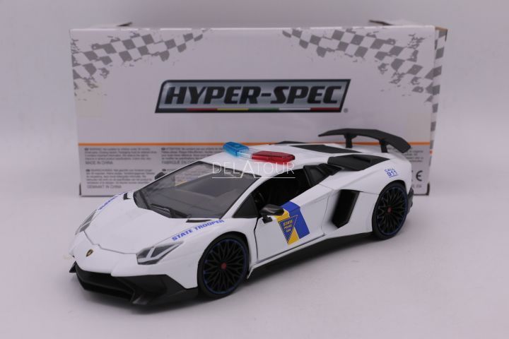 The 1:24 Diecast modelcar of the Lamborghini Aventador SV State Police.