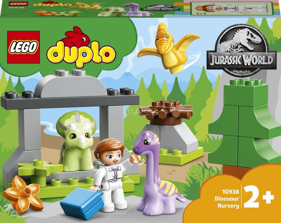 Welkom in de leefomgeving van de babydino's! Door te zorgen voor de 3 dinosaurussen en door de boselementen op te bouwen, ontwikkelen jonge kinderen nieuwe vaardigheden en werken ze aan hun fijne motoriek en emotionele intelligentie. Speel samen met dit LEGO DUPLO Dinosaurus crèche (10938) peuterspeelgoed en maak waardevolle mijlpalen mee in de ontwikkeling van je kleintje. Terwijl kinderen heerlijk spelen met de leuke dino figuren uit Jurassic World bouwen ze tegelijkertijd meer zelfvertrouwen op en leren ze om zichzelf te uiten.Peuters die van dieren houden kunnen samen met Claire Dearing uit Jurassic World 3 schattige babydino's verzorgen. Het dinosaurus speelgoed bevat een Triceratops in een grot, een Pteranodon op een nest en een Brachiosaurus die met zijn lange nek aan de blaadjes hoog in de boom knabbelt.De LEGO DUPLO sets zijn vakkundig ontworpen met boeiende verhaallijnen, vrolijke kleuren, diverse personages en interessante details om jouw kleintje een GROTE start in het leven te geven. Het Jurassic World speelgoed kan op verschillende manieren worden ingedeeld voor eindeloze fantasierijke speelmogelijkheden. Deze praktische speelset is een ideaal cadeau voor peuters en kinderen vanaf 2 jaar die van dieren en dino's houden.