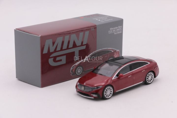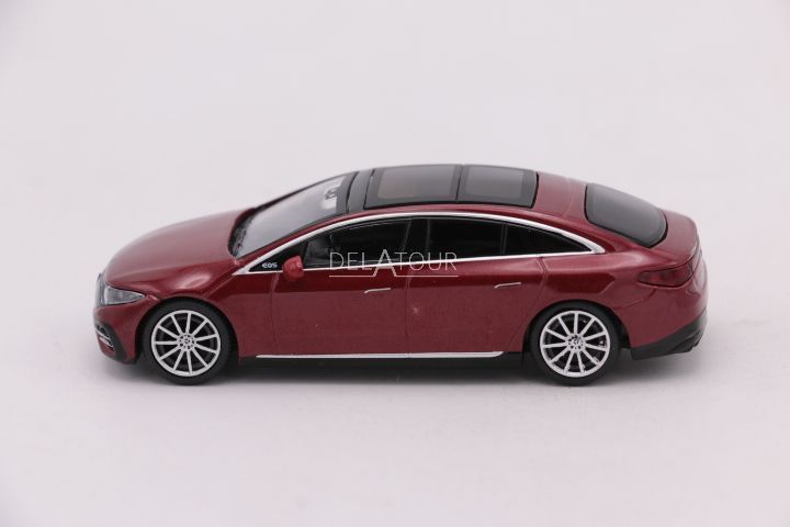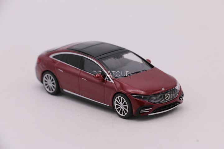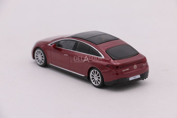 The 1:64 Diecast Modelcar of the Mercedes Benz EQS 580 4Matic of 2024 in Red Metallic.The manufactor of the scale model is Mini GT.