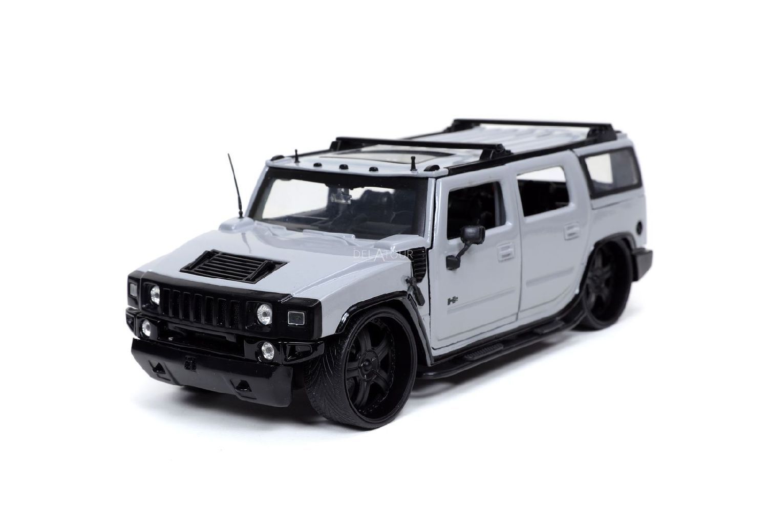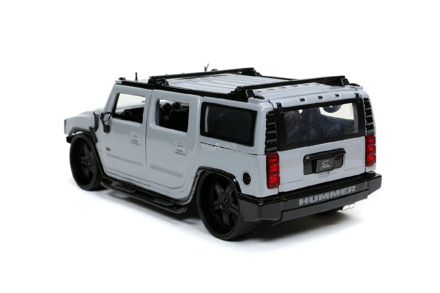 The 1:24 Diecast modelcar of the Hummer H2 of 2003 in Grey.The manufacturer of the scalemodel is Jada.