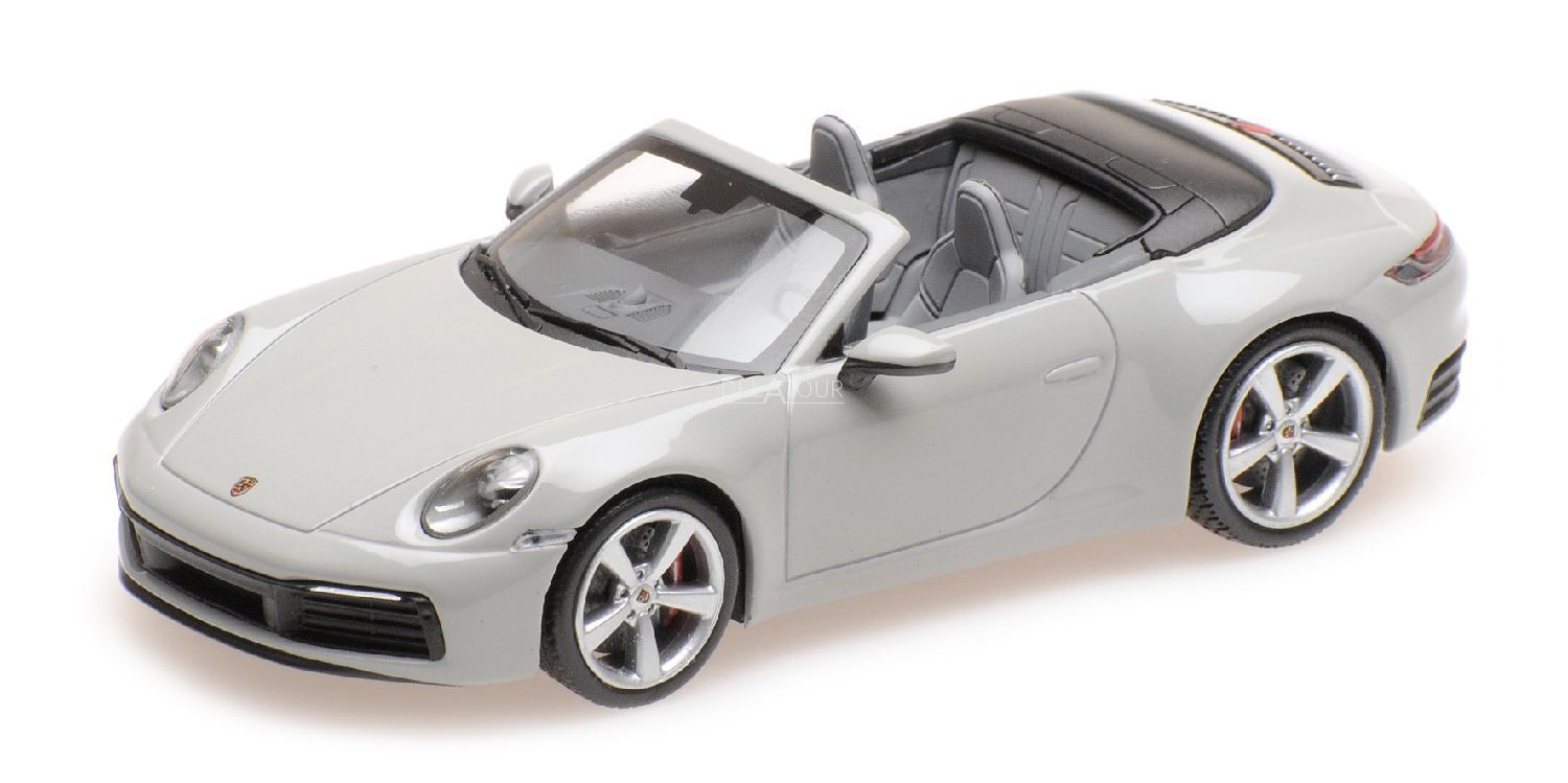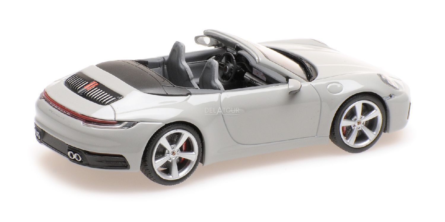 The 1:43 Diecast Modelcar of the Porsche 911 (992) Carrera 4S Cabriolet of 2019 in Grey.