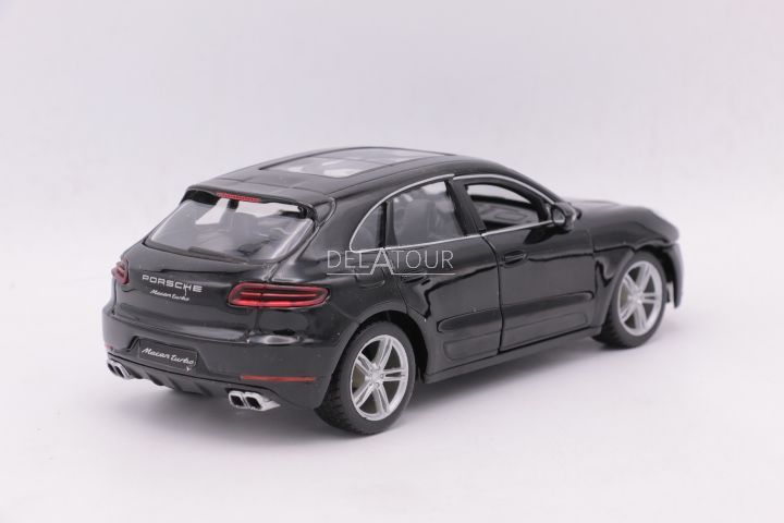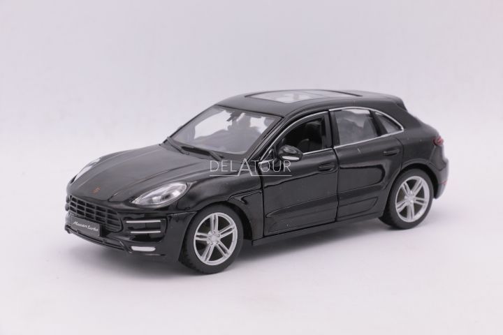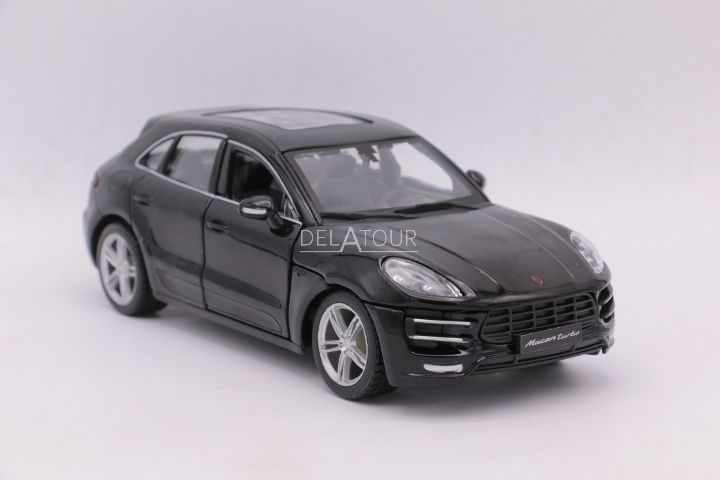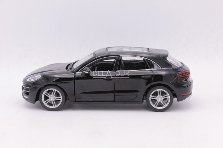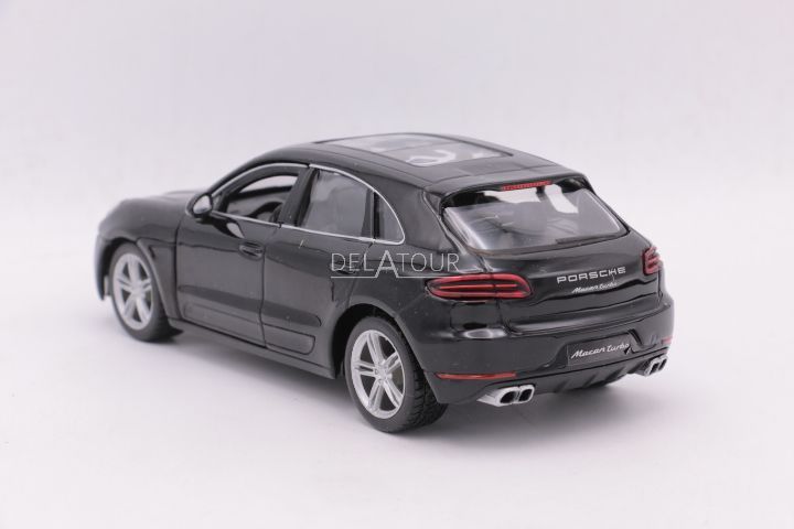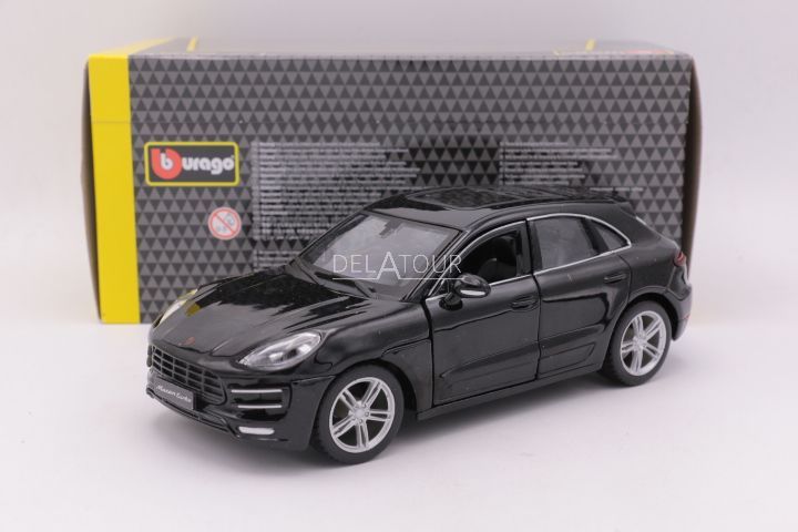 The 1:24 Diecast Modelcar of the Porsche Turbo Macan in Black. The manufacturer is Burago.