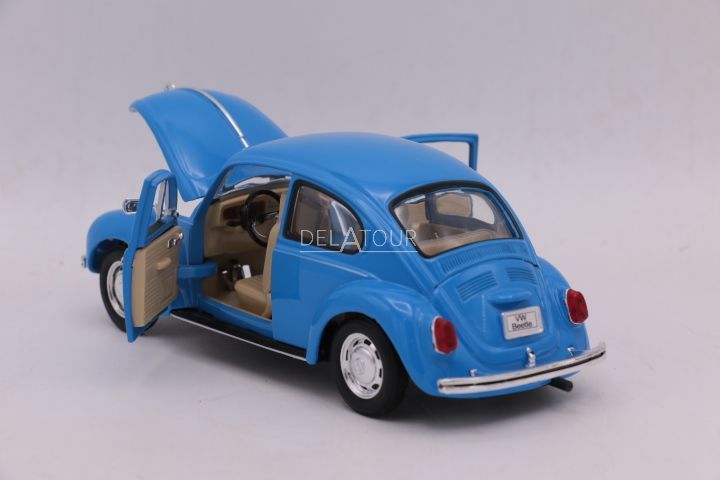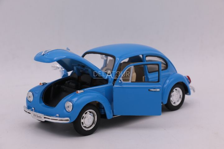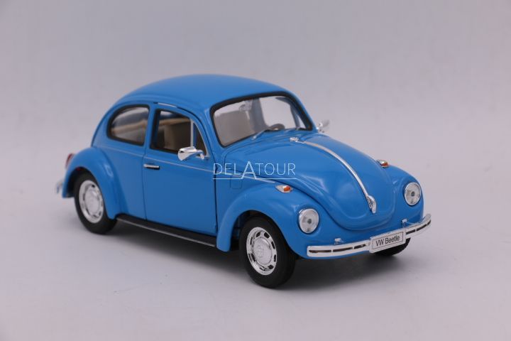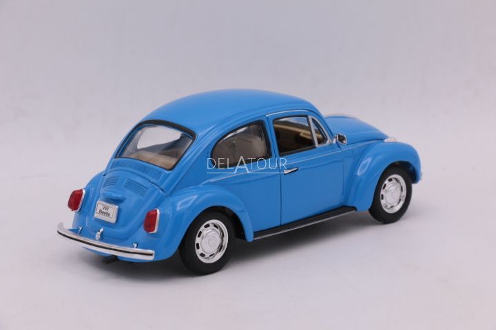The 1:24 Diecast model of the Volkswagen Beetle in Blue.The manufacturer of the scalemodel is Welly Nex.
