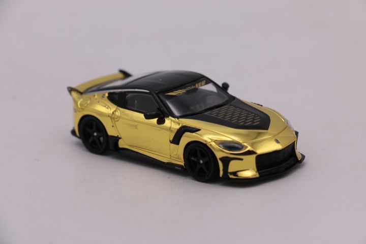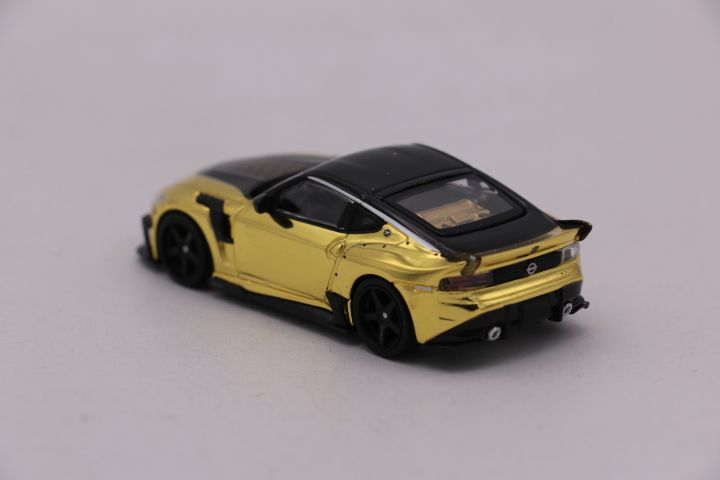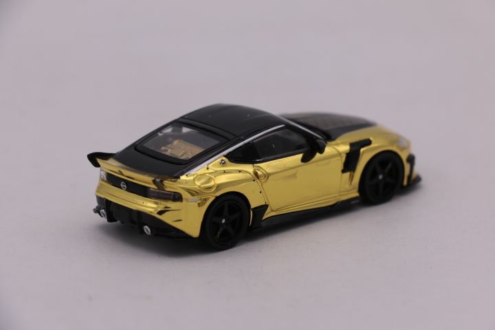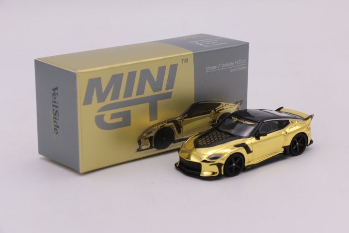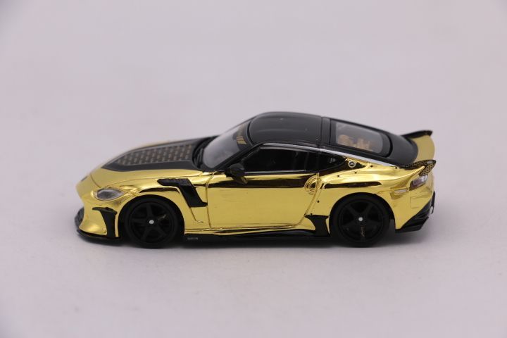Modèle réduit de la Nissan Z400 Veilside FFZ400 de 2024, en métal chromé doré, à l'échelle 1:64.Le modèle réduit est fabriqué par Mini GT.