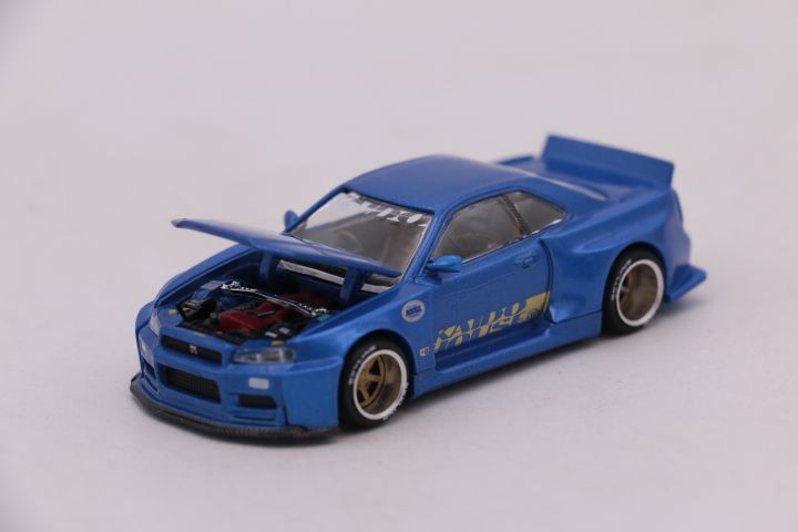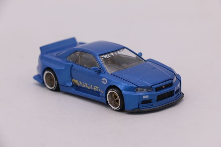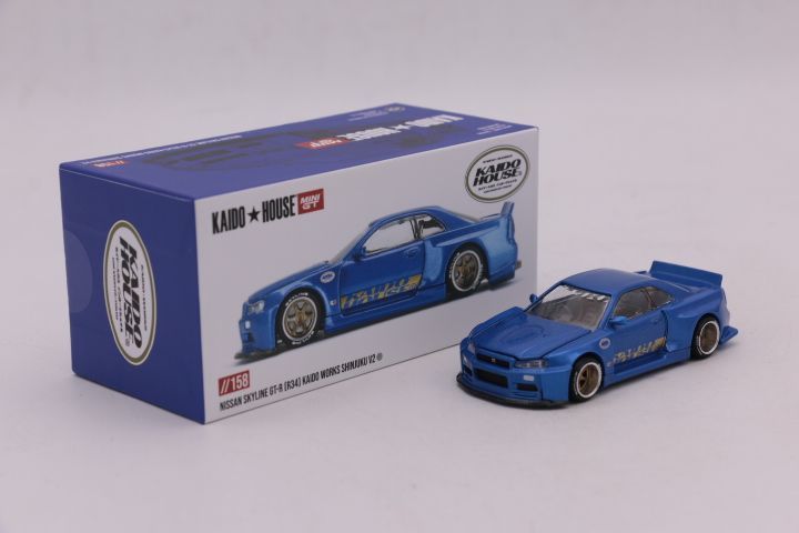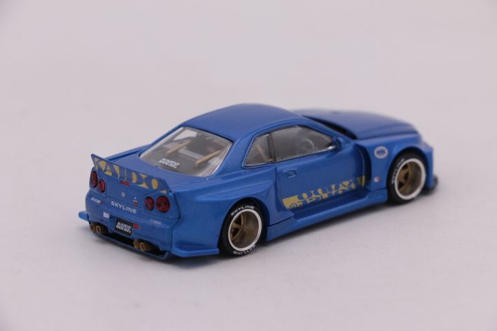 Modèle réduit de la Nissan Skyline GT-R R34 Kaido Works Shinjuku V2 à l'échelle 1:64.Le modèle réduit est fabriqué par Kaido House.