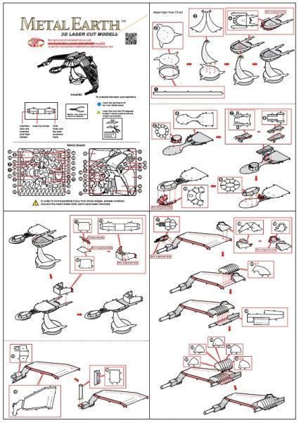 3d metalen model kit van een Star Trek Klingon Bird Of Prey.easy te monterensimply knippen uit de stukken en buigen van de tabs door overeenkomstige verbinding puntentweezers of kleine naald neus tangen worden voorgesteld om de montage te vergemakkelijken. De fabrikant van de kit is Star Trek Fasinations.This kit is alleen online beschikbaar