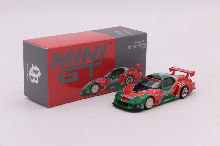De 1:64 Diecast Modelauto van de Mazda RX-7 Liberty Walk Super Silhouette 787B Tas uit 2024.De fabrikant van het schaalmodel is Mini GT.