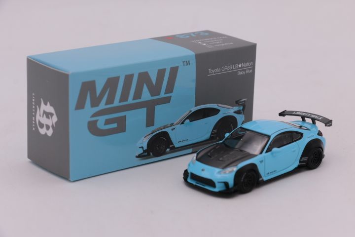 De 1:64 Diecast Modelauto van de Toyota GR86 LB Nation in Babyblauw.De fabrikant van het schaalmodel is Mini GT.